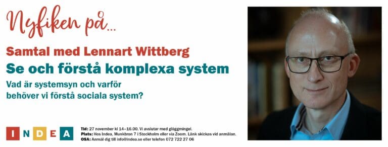 Tid: 27 november kl 14-16.00. Vi avslutar med glöggmingel. Plats: Hos Indea, Munkbron 7 i Stockholm eller via Zoom. Länk skickas vid anmälan. OSA: Anmäl dig till info@indea.se eller telefon 072 722 27 06